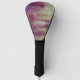 A Golf Head Cover (Driver), With Black, Color, Piping, and a Picture of a Tye Dye Design= (Tye Dye #6), Colors=Dark Purple, Maroon, Yellow, White.
