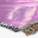 A quality printed throw has its advantages. This is a much finer weave throw than its loopier cousins, and though lighter, it is worth the investment for custom room accessorizing. The back is much prettier than the typical brown, and the fringe on the long sides very vivid, the selvage nicely done. Before photographing, I washed the throw in cold water, delicate, with a thicker woven throw the same size. On tumble dry low, this throw was dry in half the time as the other. This is a very practical quality if you use throws for furniture covers or to wrap up in frequently. The sleekness of the fabric makes it a great layer for accenting or protecting without the feeling of sitting on too much stuff. Perfect for napping or when you feel a light chill coming on. The color printing is beautiful and on this fabric, matched the design and color of my Photoshop image. This is an advantage for blending room fabrics and colors. The fringe on the short sides prints the colors from the design image and therefore varies from the side fringe. I streaked a white fractal line through the plaid pattern to give the illusion of weaving. This printed as crisp as an illusory thread, and put some white in the short side fringe, showing another advantage of print vs loomed- for artistic purposes, line lines, detail, and color integrity can be planned and preserved. My loomed throws have color limitations and more of a needlepoint texture. Print throws reproduce an exact image. The throw felt a little stiff straight out of the package, but this went away in the first delicate wash. Of course I searched the wash water for ink or bleeding and there was none.