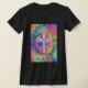 Tye Dye Cross by Amelia Carrie features a bright white cross with a small rainbow colored heart in the center of it. In the background their is a peace symbol.