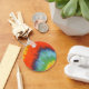 This keychain has an image of a tye dyed fabric. Very colorful! red, blue, green, yellow.