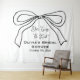 A simple black and white She's Tying The Knot Cute Bow Bridal Shower photo backdrop tapestry. Templates that make it easy for you to change the text: fonts and colors—with a cute hand-drawn bow doodle and script typography.
