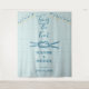 Rustic nautical wedding tapestry decor featuring a whimsical romantic knot displayed inside blue wood boards and festive string lights. Blue typography. Makes a great photo backdrop!