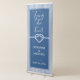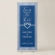 Modern nautical wedding banner featuring a whimsically romantic white heart knot displayed inside a navy blue border with rope accents and stripes. White typography. Classic navy blue and white color scheme.