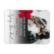 Simple, modern, black and white wedding save the date invitation magnet with red watercolor flower and photo.
