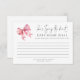 Tying The Knot Pink Bow Bridal Shower Date Night Ideas Card. Available digitally and printed. The main header, She's Tying the Knot, is in an elegant set script. The rest of the text you can easily personalise.