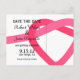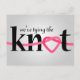Make sure you friends and family SAVE THE DATE with a pretty pink heart love knot for the "O" in the text KNOT. Customizable TYING THE KNOT postcards for your special day.