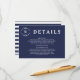 Wedding details card with your monogram inside a rope wreath in white on a navy blue background. Trendy nautical design for your wedding!