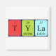 Tyla spelled out as T Y La (Tritium Yttrium Lanthanum) on a magnet for the scientist in you.