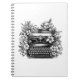 Typewriter and flowers aesthetic notebook. Dark academia and light academia stationery. Floral typewriter vintage illustration. Romantic writer gift idea.