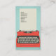 These business cards are perfect for authors, writers, journalists or anyone in the publishing field. Personalize these cards with your name and contact information. Use the back to display your own message, favorite literary quote or even the cover of your new book. These vertical business cards feature a vintage retro style typewriter and bold colors for an eye catching presentation.
