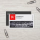 A business card template with a long rectangular image/photo area with a close-up photo of typewriter type leavers which alternatively can be replaced with your own image or photo and with a panel in the top left for a monogram or logo which includes a "W" as an example monogram which can also be changed. The design is balanced with four small rectangular text based symbols on the right created with the Semaphore symbol font. The white area is also a frame mask making it easy to position and resize a photo underneath. Company name and business type/quote on the front with name and contact details on the back in white on a contrasting dark gray background. Can be adapted to a variety of businesses and other uses.