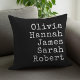 Typewriter Personalized Family Throw Pillow. Create your own custom throw pillow with family names of kids, parents, and pets in vintage style typewriter typography. Great Christmas gift for grandparents.