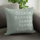 Typewriter Personalized Family Throw Pillow. Create your own custom throw pillow with family names of kids, parents, and pets in vintage style typewriter typography. Great Christmas gift for grandparents.