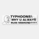 TYPHOONS!!!!! WHY U ALWAYS RUIN WEEKEND?!?!? WHY? WHY? WHY? WHY U NEVER ARRIVE ON A TUESDAY?!?