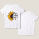 An image featuring a half-sunflower illustration on a black background, with the inspirational quote, "In a world full of roses, be a sunflower." The text is designed with a handwritten, rustic feel, and the sunflower's vibrant yellow petals and dark center contrast beautifully with the dark backdrop.