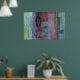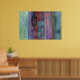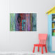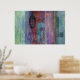 Modern Art Poster with abstract design featuring typography against beautiful multicolored abstract design in muted, grunge style colors of blue, red, green, purple, lavender, and teal. Perfect for urban interiors.