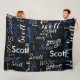 Typography Calligraphy Name allover black Fleece Blanket