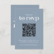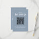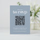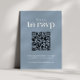 Modern minimal design with QR code and trendy typography on Dusty Blue background. The text can easily be personalized for a unique one of a kind design for your special day.