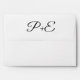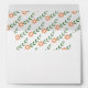 Typography initials and coral flowers simple floral wedding envelope. It showcases your initials in a cursive script handwritten style typography on the flap and the inside includes a pattern with small coral peach flowers and green leaves.
