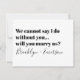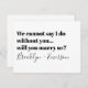 Plain white envelopes are included with paper invitations and will come to fit the invitation size you select. If you don’t need the envelopes, you may choose to not receive them by selecting the dropdown below "Envelopes" and choosing "None." If you’d like to have a design on your envelopes, you can browse all of these available envelopes to find the design that complements your Typography Officiant Proposal Marry Us Invitation.