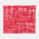 Typography Pattern White Names Red Fleece Blanket