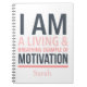 Typography that says I am a living & breathing example of motivation. Personalized Notebook