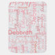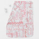 Add your own name to make a seamless and feminine pink pattern design on a light gray baby-blanket. A pattern of pink-color names in different font styles