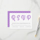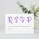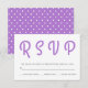 Elegant modern typography minimalist polka dot lavender wedding RSVP card. The elements of this wedding design are the word RSVP in a cute retro casual yet classic font on the front and the white polka dot pattern on lavender purple on the back. You can remove the polka dot pattern if you desire the back to be of solid lavender color.