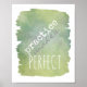 This typography poster has text practice makes perfect text in white and gray on soft moss green watercolor background wall art for home or office.