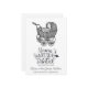 A whimsical illustrated typography saying: mama's little sidekick coming soon, complemented by a cute vintage baby carriage. Black and white.