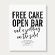 Funny quote Free Cake Open Bar and a wedding on the side.