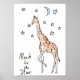 Typography "reach for the star" comic giraffe by the watercolor artist Cheng Jing. Pen and ink, a giraffe with stars and moon.