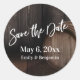 Typography Save the Date Brown Wooden Barrel Classic Round Sticker