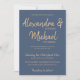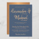 Typography script navy copper metallic wedding invitation