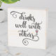 The perfect wooden sign for the wine lover in your life. A fun, fancy script font and illustrated glass of red wine has the saying "drinks well with others."