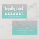 A modern, stylish loyalty card for hair and makeup artist business card with modern hand lettering style brush typography in white on a trendy faux silver glitter turquoise robbin egg blue trendy and elegant background. If you need any customization, don't hesitate in contacting me
