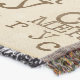 A quality printed throw has its advantages. This is a much finer weave throw than its loopier cousins, and though lighter, it is worth the investment for custom room accessorizing. The back is much prettier than the typical brown, and the fringe on the long sides very vivid, the selvage nicely done. Before photographing, I washed the throw in cold water, delicate, with a thicker woven throw the same size. On tumble dry low, this throw was dry in half the time as the other. This is a very practical quality if you use throws for furniture covers or to wrap up in frequently. The sleekness of the fabric makes it a great layer for accenting or protecting without the feeling of sitting on too much stuff. Perfect for napping or when you feel a light chill coming on. The color printing is beautiful and on this fabric, matched the design and color of my Photoshop image. This is an advantage for blending room fabrics and colors. The fringe on the short sides prints the colors from the design image and therefore varies from the side fringe. I streaked a white fractal line through the plaid pattern to give the illusion of weaving. This printed as crisp as an illusory thread, and put some white in the short side fringe, showing another advantage of print vs loomed- for artistic purposes, line lines, detail, and color integrity can be planned and preserved. My loomed throws have color limitations and more of a needlepoint texture. Print throws reproduce an exact image. The throw felt a little stiff straight out of the package, but this went away in the first delicate wash. Of course I searched the wash water for ink or bleeding and there was none.