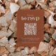 Modern minimal design with QR code and trendy typography on terracotta burnt orange background. The text can easily be personalized for a unique one of a kind design for your special day.