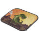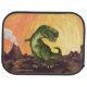 Animal Parade T-Rex Dinosaur Car Mat brought to you by ITD Animal Parade features our original art of a cute Tyrannosaurus Rex from the front and the back standing in a prehistoric landscape complete with a smoking volcano, a textured yellow orange sky, and playful waving purple border. Painted by our talented children's illustrator, Traci Van Wagoner, this cute T-Rex dino is great for kids of all ages, and is sure to bring a smile to the faces of all dinosaur lovers on your gift list.