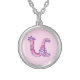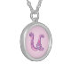 Pretty letter U monogram pendant. Whimsical letter drawing of the capital initial letter U ideal for gifting girls with a name that begins with a U. Background color can be changed if required, currently light pink. © Original drawing and design by Sarah Trett www.sarahtrett.com for www.mylittleeden.com
