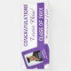 This bold text design has a template to input the name of your high school or college, class year, grad's name and image as well as a personal message. If your grad's school colors include purple, if necessary, just change the white background to match their second color.