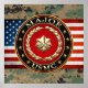 Introducing project “Military Insignia 3D”, featuring top quality military heraldry designs. Here you will find wrapped canvas and framed fine art prints decorated with rank insignia of a U.S. Marine Major (USMC Maj). In the United States Marine Corps, major is a field grade military officer rank just above the rank of captain and just below the rank of lieutenant colonel. It is equivalent to the naval rank of lieutenant commander in the other uniformed services, although lieutenant commanders are considered junior officers by their respective services while the rank of major is considered field grade. A major typically serves as a battalion executive officer (XO) or as the battalion operations officer (S3). A major can also serve as a primary staff officer for a brigade or task force in the areas concerning personnel, logistical and operations. A major will also be a staff officer / action officer on higher staffs and headquarters. In addition, majors command augmented companies in Combat Service and Service Support units. Majors also command Special Operations companies. The pay grade for the rank of major is O-4. The insignia for the rank consists of a golden oak leaf, with slight stylized differences between the versions. Promotion to major is governed by Department of Defense policies derived from the Defense Officer Personnel Management Act of 1980. DOPMA guidelines suggest 80% of captains should be promoted to major after serving a minimum of three years at their present rank and after attaining nine to eleven years of cumulative commissioned service.