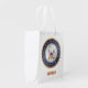 I own a lot of reusable grocery bags, but this one holds its box shape and simply stands up on its own even if there is nothing in it. Its stiffer than your regular reusable bag too, and the material is water resistant. I poured water on the exterior and it didn't penetrate inside to the other side. I'm buying a couple more. Wish I knew how durable these bags were or I would have purchased a few more with my initial order. I also like how it folds and buttons up when not in use, making it easy to put into a handbag or luggage. I haven't used this bag yet, as I purchased it for travel use, like when you're at the airport and need to small sturdy bag to place any airport purchases in, like food, souvenirs etc. I can tell you when you first see this bag, it looks very cheap, but after closer inspection of the material and the seams its a very sturdy reusable bag. I tested it out by putting some really heavy objects inside and I could not observe any stress to the bag at all. Another thing I like about it, is the fact the medium size that this is makes it easy to just carry it in your hand without the bottom of the bag scraping the ground, like most other bags do when you're short. That alone, deserves 5 stars. I just wish there were more colors to choose from! The PDX Airport Carpet printing looks just like the photo, and using this bag during travel might be a conversation piece when/if a native from Oregon happens to see it.
