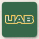 This design features the strong, recognizable block-letter logo of the University of Alabama at Birmingham (UAB). The acronym "UAB" is displayed in bold, sans-serif letters, conveying a sense of stability and authority. The letters are a solid, deep green, a color associated with the university, set against a clean, white background for maximum contrast and visibility.