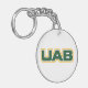 This design features the strong, recognizable block-letter logo of the University of Alabama at Birmingham (UAB). The acronym "UAB" is displayed in bold, sans-serif letters, conveying a sense of stability and authority. The letters are a solid, deep green, a color associated with the university, set against a clean, white background for maximum contrast and visibility.