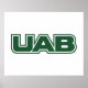 This design features the strong, recognizable block-letter logo of the University of Alabama at Birmingham (UAB). The acronym "UAB" is displayed in bold, sans-serif letters, conveying a sense of stability and authority. The letters are a solid, deep green, a color associated with the university, set against a clean, white background for maximum contrast and visibility.