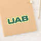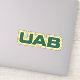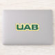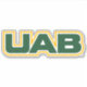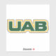 This design features the strong, recognizable block-letter logo of the University of Alabama at Birmingham (UAB). The acronym "UAB" is displayed in bold, sans-serif letters, conveying a sense of stability and authority. The letters are a solid, deep green, a color associated with the university, set against a clean, white background for maximum contrast and visibility.