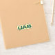 This design features the strong, recognizable block-letter logo of the University of Alabama at Birmingham (UAB). The acronym "UAB" is displayed in bold, sans-serif letters, conveying a sense of stability and authority. The letters are a solid, deep green, a color associated with the university, set against a clean, white background for maximum contrast and visibility.