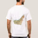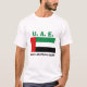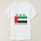 An editable title and slogan accompanies the vertical red band with green, white and black bands to the right of the Emirati flag on the front of this t-shirt. The back displays a detailed map of UAE.