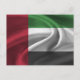Postcard with the flag of UAE in wavy fabric style design. This design features the United Arab Emirates flag colors and design with a beautiful waving material textured effect. This flag design is a great way to show you are proud to be from UAE.